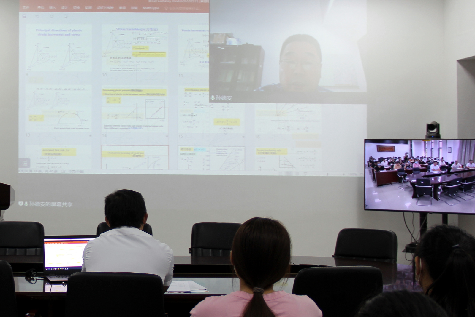 报告会上,孙德安教授首先简单介绍了土的主要变形和强度特性,并与金属材料的变形和强度特性进行比较。在金属材料的弹塑性本构模型基础上,介绍了考虑土体的主要力学特性(压硬性、剪胀性和摩擦性)的弹塑性本构模型(剑桥模型),并介绍了有关土体本构模型的最近进展,包括本构模型的三维化方法(变换应力方法)、统一硬化本构模型(UH模型)等,最后介绍了土的本构模型在土木水利工程中的应用。