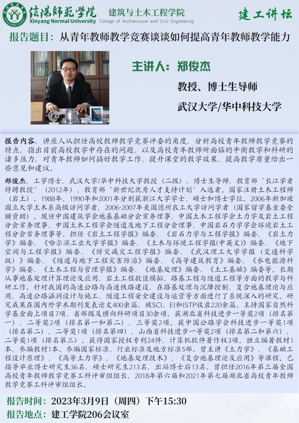 报告人简介:工学博士,武汉大学/华中科技大学教授 (二级),博士生导师,教育部“长江学者特聘教授” (2012年),教育部“新世纪优秀人才支持计划”入选者。国家注册土木工程师(岩士) 。1988年、1990年和2001年分别获浙江大学学士、硕士和博士学位。2006年新加坡国立大学土木系高级访问学者,2006-2007年美国德州农工大学访问学者 (国家留学基金委全额资助) 。现任中国建筑学会地基基础分会常务理事、中国土木工程学会土力学及岩土工程分会常务理事、中国土木工程学会隧道及地下工程分会理事、中国岩石力学学会环境岩土工程分会常务理事等。担任《岩土工程学报》编委、《岩石力学与工程学报》编委、《岩土力学》编委、《哈尔滨工业大学学报》编委、《土木与环境工程学报(中英文)》编委、《地下空间与工程学报》编委、《防灾减灾工程学报》编委、《武汉理工大学学报 (交通科学版) 》编委、《隧道与地下工程灾害防治》编委、《高等建筑教育》编委、《水电能源科学》编委、《土木工程与管理学报》编委、《地基处理》编委、《土工基础》编委等。长期从事地基处理计算理论及应用、岩土工程数值模拟、路基工程与隧道工程等方面的教学与科研工作。针对我国的高速公路与高速铁路建设,在路基处理与沉降控制、复合地基理论与应用、高速公路涵洞设计与施工、隧道工程安全建设与运营等方面进行了系统深入的研究,研究成果在国内外学术期刊发表论文400余篇,被SCI,E和ISTP收录220全篇,主持国家自然科学基金面上项目7项、省部级及横向科研项目30余项。获湖北省科技进步一等奖项 (排名第一) ,二等奖2项 (排名第一和第二) ,三等奖2项。获中国公路学会科技进步一等奖1项(排名第二),二等奖1项 (排名第四) ,山西省科技进步一等奖2项 (排名第二和第六)二等奖1项 (排名第三) 。获得国家授权专利24件,计算机软件著作权3项。独立编著教材1本,参编教材1本。参编国家标准、行业标准及地方标准5部。曾主讲《土力学》、《基础工程设计原理》、《高等土力学》、《地基处理技术》、《复合地基理论及应用》等课程。已指导毕业博士研究生36名,硕士研究生213名,出站博士后13名。曾担任2016年第三届全国高校青年教师教学竞赛工科评审组组长、2018年第六届和2021年第七届湖北省高校青年教师教学竞赛工科评审组组长。