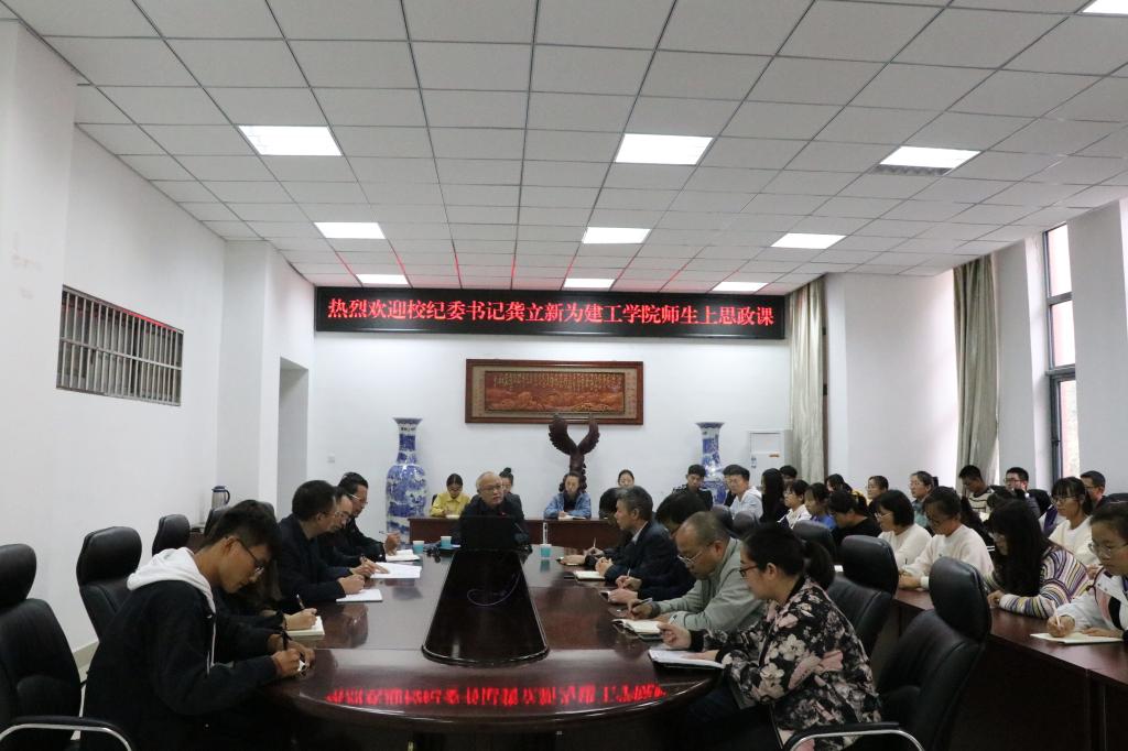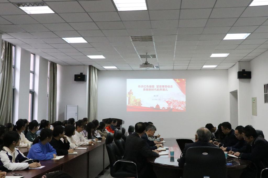 11月1日,根据学校“不忘初心、牢记使命”主题教育的工作安排,校纪委书记龚立新在综合实验楼206会议室为BEAT365英国官网师生上了一堂题为“传承红色基因,坚定理想信念,勇做新时代的弄潮儿”的思政课。学院领导班子成员,辅导员、党支部书记和部分学生聆听了思政课。