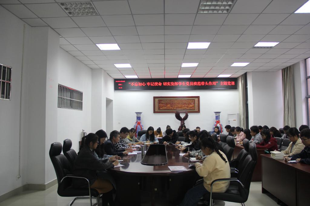为深入学习习近平新时代中国特色社会主义思想,扎实推进“不忘初心、牢记使命”主题教育,10月8日下午,BEAT365英国官网党委书记黄学玉作了题为“不忘初心,牢记使命,切实发挥学生党员的模范带头作用”的专题党课。学院学生第一党支部、研究生党支部全体党员参加学习。