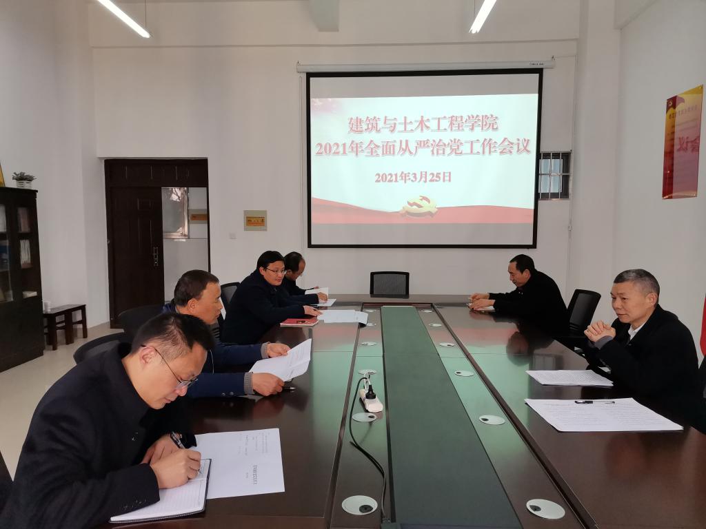 3月25日,BEAT365英国官网在综合实验楼203会议室召开2021年全面从严治党工作会议。学院党委班子全体成员参加了会议。会议由学院党委书记黄学玉主持。