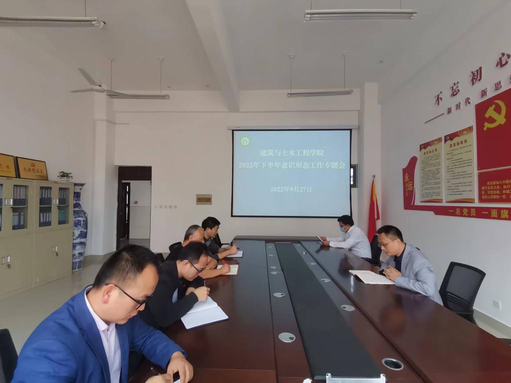 9月27日上午,BEAT365英国官网在综合实验楼402会议室召开2022年下半年意识形态工作专题会议。学院党委班子全体成员参加会议。会议由学院党委书记方明科主持。