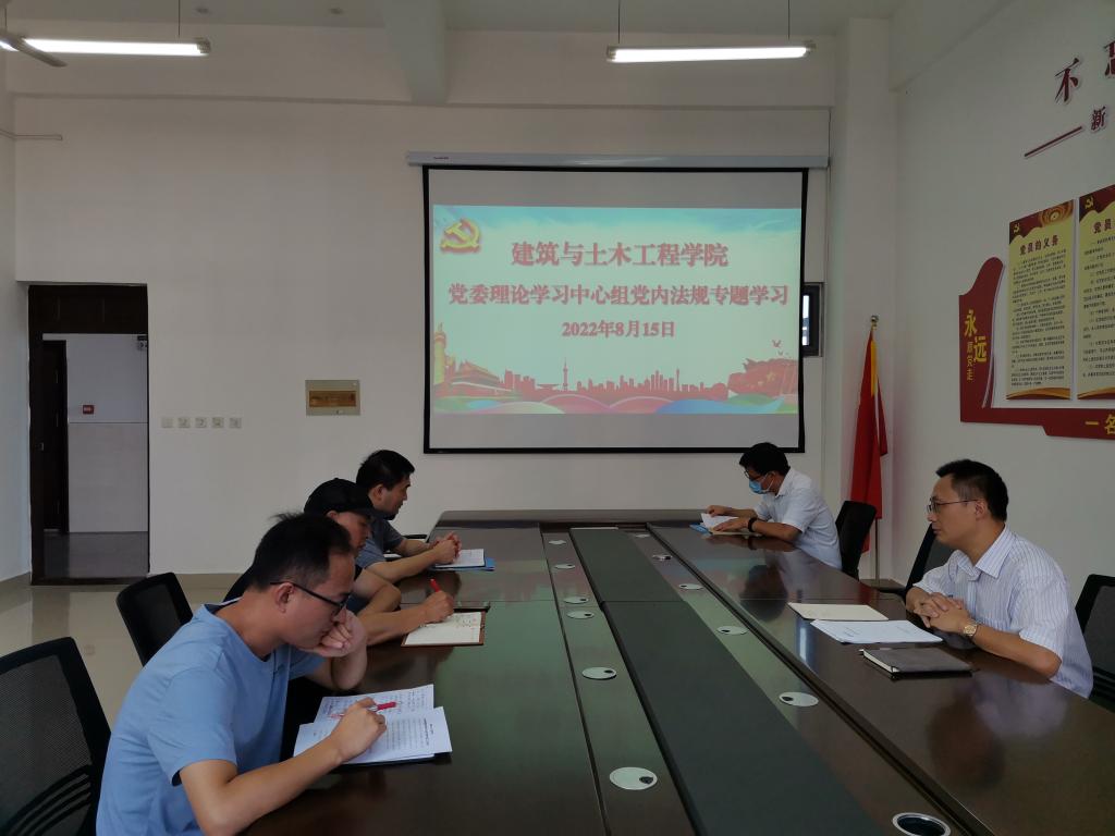8月15日,我院在综合实验楼402会议室召开党委理论中心组党内法规专题学习会议,会议由学院党委书记方明科主持。