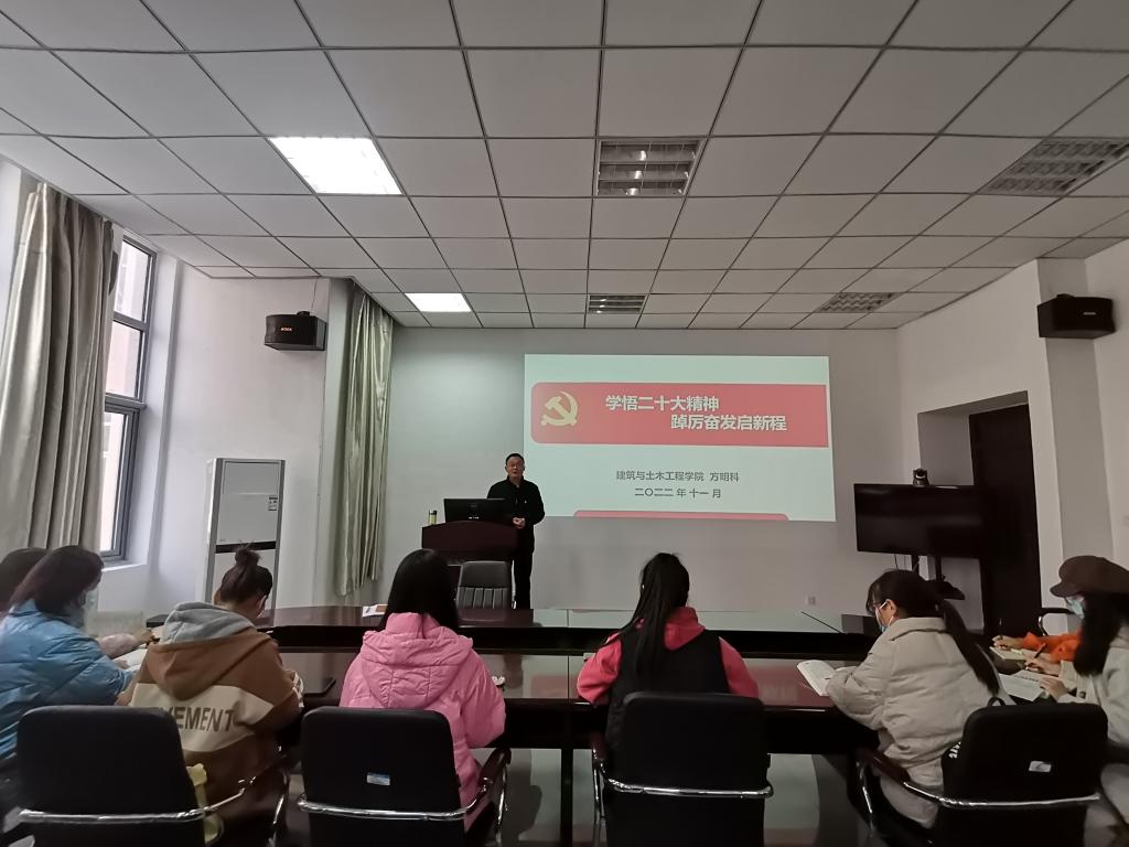 开班仪式结束后,方明科为培训班学员作了题为“学悟二十大精神,踔厉奋发启新程首场辅导报告。方明科首先从党的二十大的重大意义、主题和主要成果、过去5年的工作和新时代10年的三件大事和伟大变革、在16个方面取得的主要成就、全面建设社会主义现代化国家的目标任务,坚持党的全面领导和全面从严治党,应对风险挑战,教育、科技、人才工作的部署等方面对党的二十大精神进行深入解读接着,方明科结合学院专业特点和优秀校友事迹,激励同学们志存高远,锐意进取,努力学习,勇于创新,不断提升专业素养,锤炼吃苦精神,勇于砥砺奋斗,主动担当作为,在大学里学本领、长本领、有本领,让青春在全面建设社会主义现代化国家的火热实践中绽放绚丽之花。