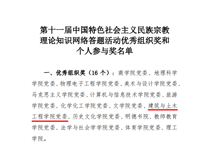 我院在学校第十一届大学生民族宗教理论知识答题活动中被评为优秀组织单位
