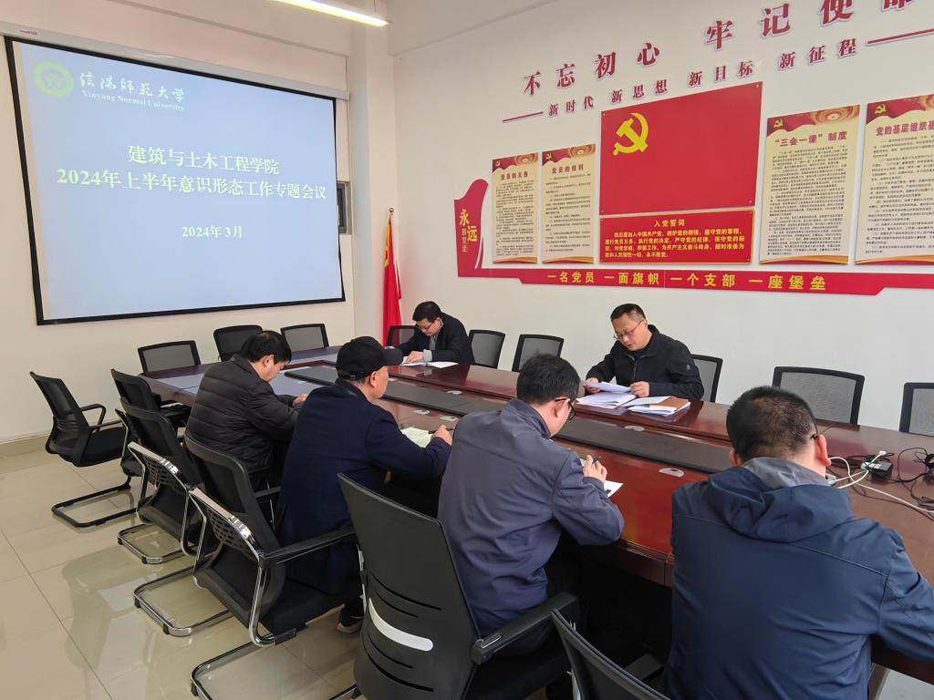 3月19日上午,BEAT365英国官网在综合实验楼402会议室召开意识形态工作专题会议,回顾总结了学院2023年意识形态工作情况,安排部署2024年意识形态工作。学院党委班子全体成员参加会议。会议由学院党委书记方明科主持。