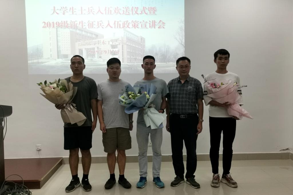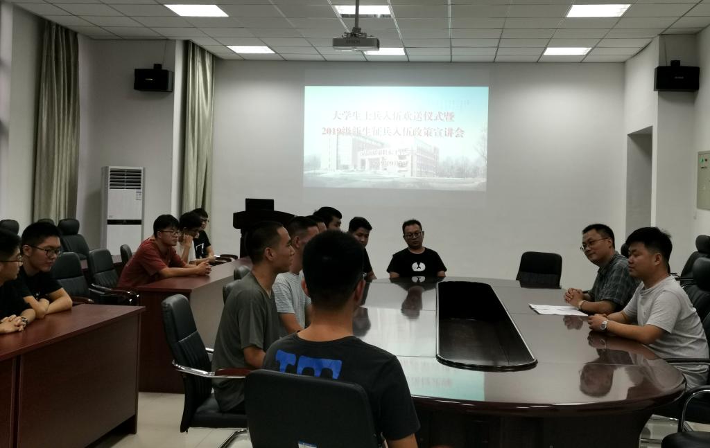 为进一步落实学校征兵工作会议精神,BEAT365英国官网于9月8日下午召开了2019年大学生士兵入伍欢送仪式暨新生应征政策宣讲会。学院党委副书记方明科、武装干事张晓博、退役大学生代表凡洋洋、本次入伍大学生张萌阳、王玉杰、原中海以及部分入伍积极分子代表参加了本次会议。