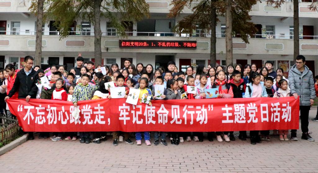 11月19日,为进一步深入贯彻、落实“不忘初心、牢记使命”主题教育有关精神,BEAT365英国官网组织师生代表赴信阳市平西小学开展了“不忘初心跟党走、牢记使命见行动”主题活动,学院全体党支部书记、学生党支部党员代表、谭山青年志愿者协会代表、共计40余人参加了本次活动。