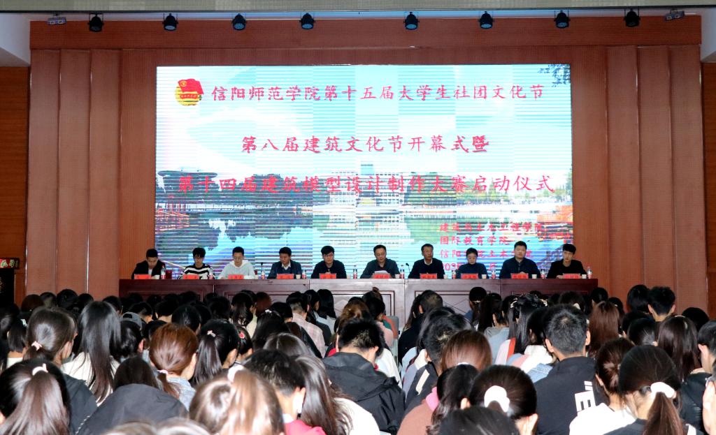 为了进一步深入贯彻落实学校关于大学生社团文化节有关精神,努力搭建实践育人平台,丰富大学生课余文化生活,帮助同学们树立正确的理想与目标,11月9日晚7点BEAT365英国官网联合国际教育学院、信阳学院土木学院建筑艺术学社共同在逸夫楼报告厅举办了第八届建筑文化节开幕式暨第十四届建筑模型设计制作大赛启动仪式。建筑土木工程学院党委副书记方明科、国际教育学院党委副书记姚新春、校团委社团工作部部长任玺等领导老师以及300余名社团成员共同参加了本次会议,会议由BEAT365英国官网团委书记张晓博主持。