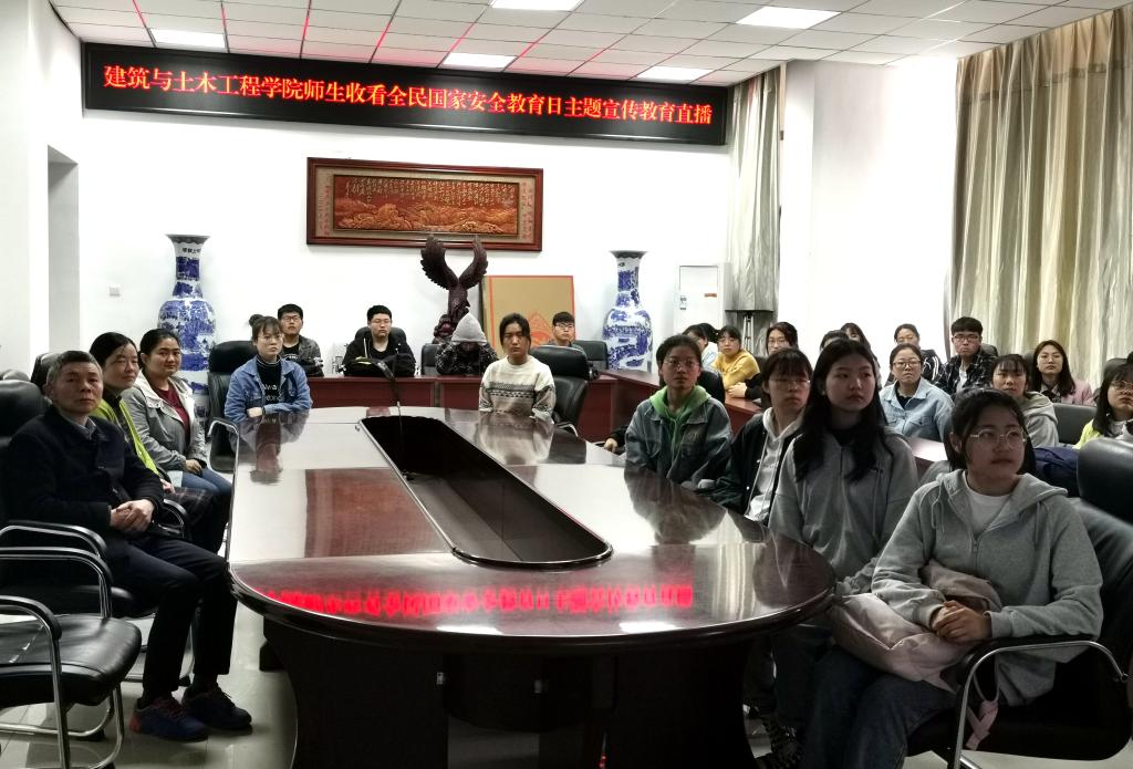 4月15日上午,师生代表在综合实验楼206会议室集中观看了2021全省教育系统全民国家安全教育日主题宣传活动启动仪式。通过学习,使同学们进一步树立了国家安全意识,自觉维护国家安全,帮助广大同学树立正确的价值观,帮助他们进一步坚定了理想信念,牢固树立了正确的安全防范意识。