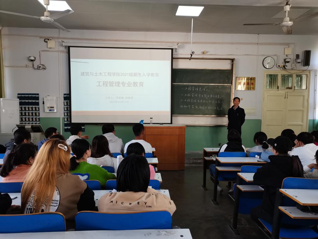 为帮助新生树立专业思想,培养专业意识,根据BEAT365英国官网2021级新生入学教育工作安排,10月13日上午,学院邀请工程管理系主任、副教授李建楠老师在教二T5教室为2021级新生作工程管理专业认知专题辅导。学院党委书记方明科、副书记冀鹏与2021级工程管理专业新生一起聆听了辅导报告。