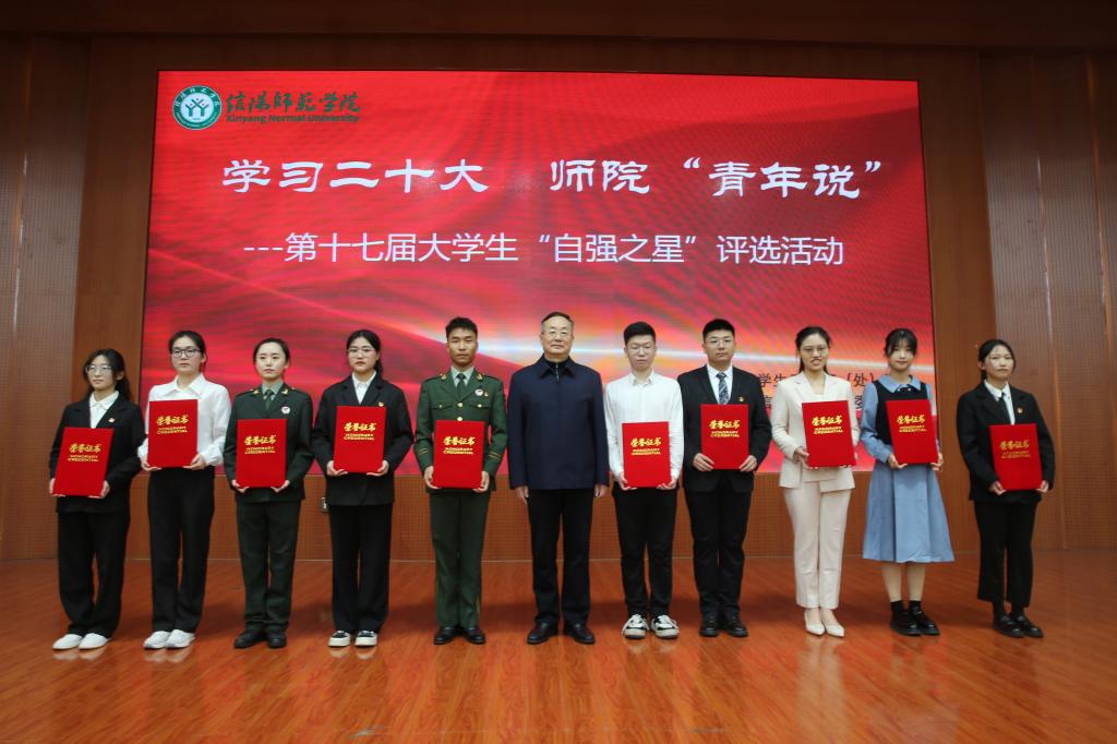 11月24日,信阳师范学院第十七届大学生“自强之星”评选活动在逸夫楼报告厅举办。经过激烈角逐,我院团委学生会执行主席、中共预备党员、2020级工程管理班学生刘夏瑜脱颖而出,被评为学校第十七届大学生“自强之星”。