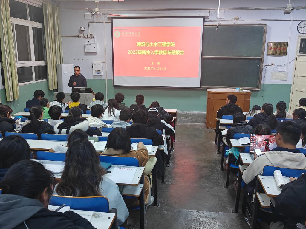 根据学校2023级新生入学教育实施方案和我院新生入学教育工作安排,11月14日晚,BEAT365英国官网党委副书记冀鹏在教二T5为2023级新生作入学教育专题报告,2023级班主任及全体学生参加会议。