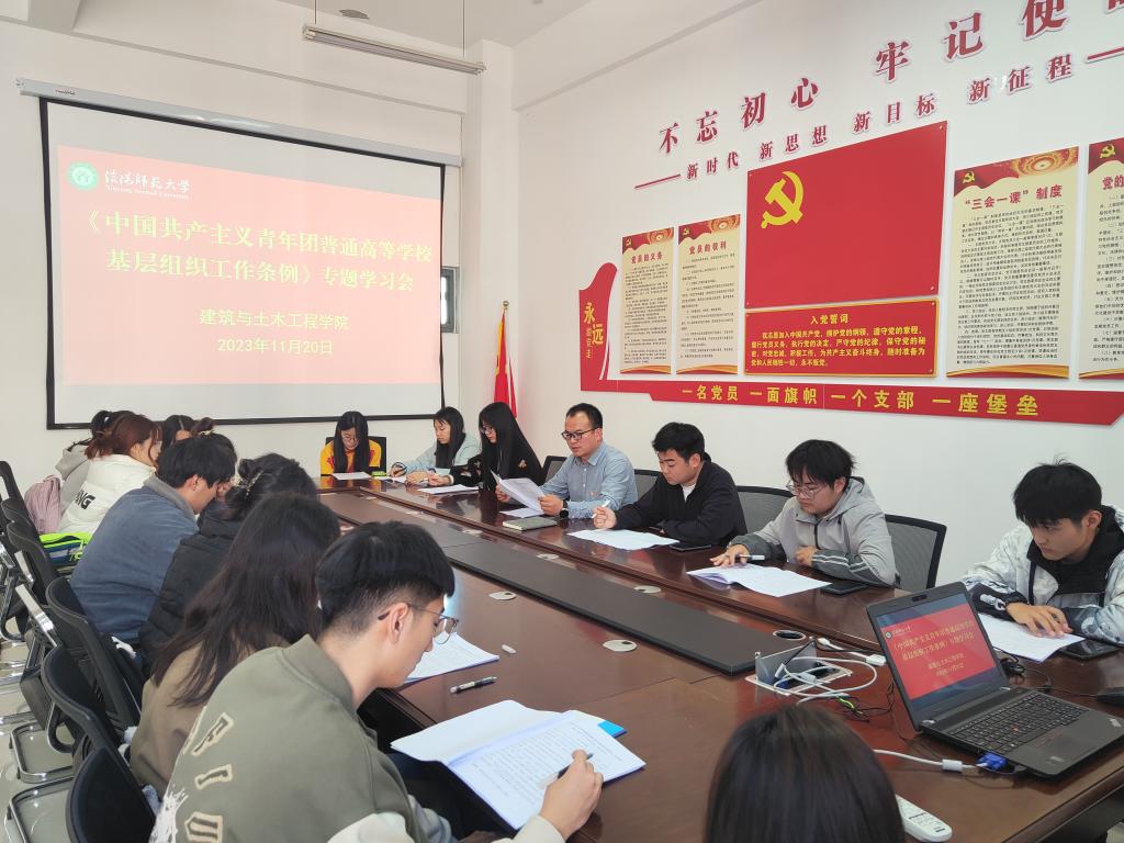 近日,共青团中央、教育部联合印发了新修订的《中国共产主义青年团普通高等学校基层组织工作条例》。为推动学生团干部及时领会条例精神,11月20日中午,BEAT365英国官网在综合实验楼402会议室召开会议,专题学习《中国共产主义青年团普通高等学校基层组织工作条例》。学院党委副书记冀鹏,团委指导老师冯舒心,各班级、各社团和学生会团支部书记参加会议。