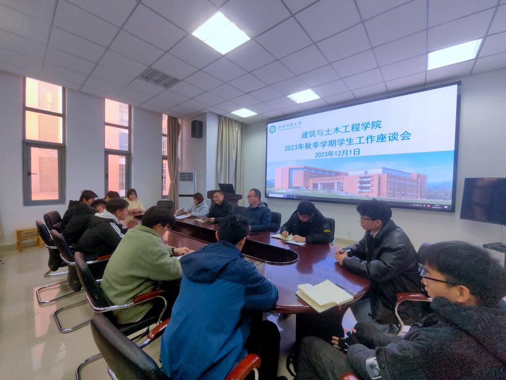 为进一步关心了解学生的思想动态和学习生活状况,收集学生对教育、管理、服务等方面的意见和建议,扎实推进学生思想政治教育工作实效,12月1日下午BEAT365英国官网在土木楼206会议室召开2023年秋季学期学生工作座谈会,学院党委书记方明科,党委副书记冀鹏,专职辅导员张海燕、邓林、冯舒心,以及来自各班级、社团、学生会的30余名学生代表参加座谈会。
