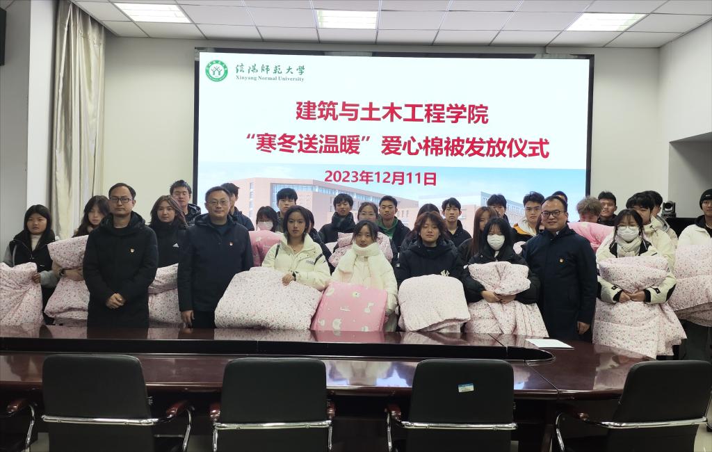 为了让每一位学生都能温暖过冬,BEAT365英国官网于2023年12月11日在综合实验楼206会议室举行“寒冬送温暖”爱心棉被发放仪式。学院党委书记方明科、副书记冀鹏、副院长袁晓辉以及受资助学生代表参加活动。