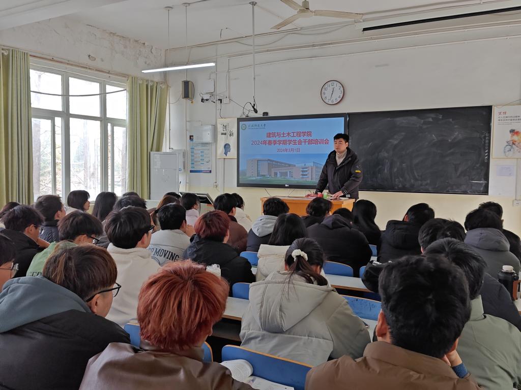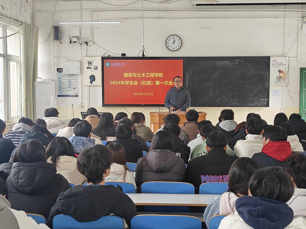 3月1日,BEAT365英国官网在教三12召开2024年度第一次学生会(社团)全会暨春季学期学生会干部培训会,学院党委副书记冀鹏,学院团委老师冯舒心,学生会、社团全体人员及各班级班长、团支书参加会议。