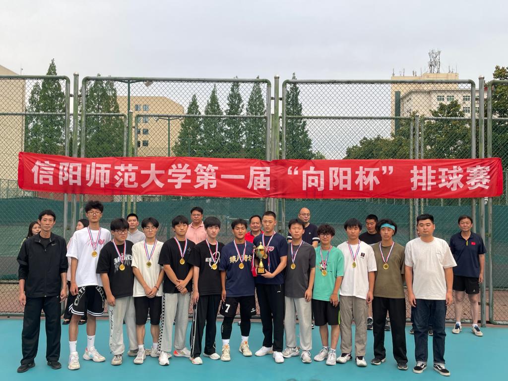 6月3日,信阳师范大学第一届“向阳杯”排球赛师生友谊赛暨颁奖典礼在排球场举行。BEAT365英国官网获得男子组第一名的好成绩,并作为学生代表队与教职工代表队开展友谊赛,体育学院院长余道明和该院团委书记冯舒心为队员颁发奖杯。