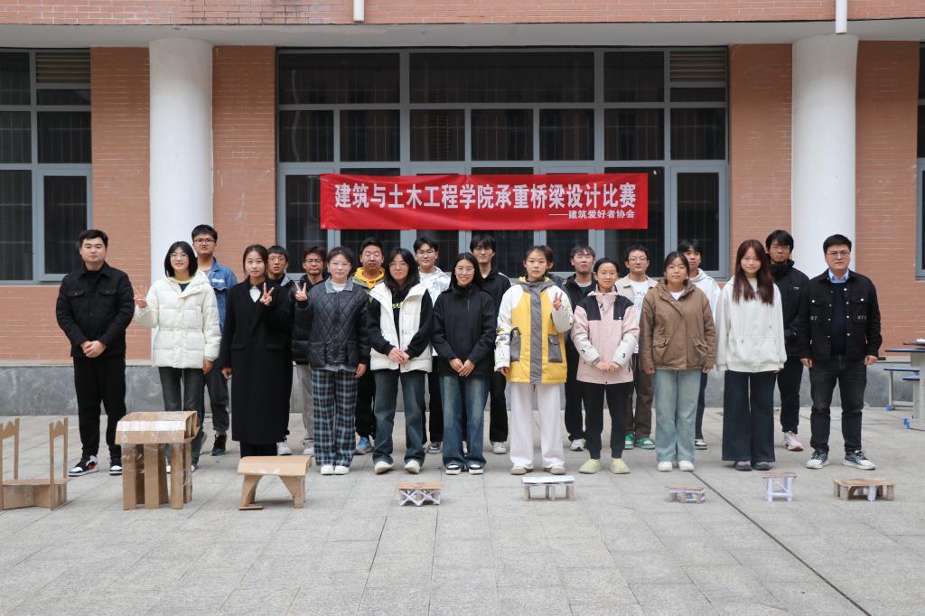 11月23日下午,BEAT365英国官网建筑爱好者协会在综合实验楼小广场举办承重桥梁设计大赛,学院团委负责人冯舒心,社团指导老师吕强、社团部分学生以及参赛选手参加活动。