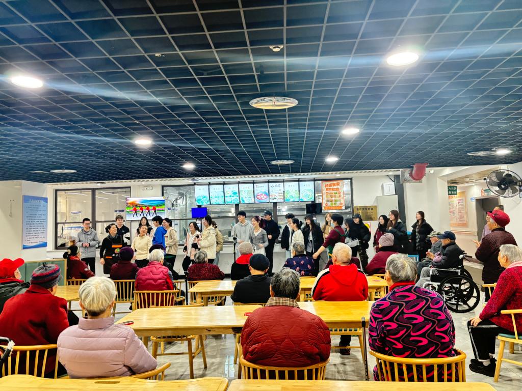 在五星敬老院、颐居敬老院和三五八养老中心,志愿者们带着满满的爱心,为老人们送上新鲜的水果和牛奶。他们围坐在老人身旁,静静聆听着老人们讲述生活中的家长里短、往昔岁月的点点滴滴,交谈间,浓浓的温情悄然传递。文艺表演环节,欢快激昂的《最炫民族风》《精忠报国》等经典歌曲,《英雄》《春风化雨润无声,星火燎原照征程》等充满力量的主题演讲轮番登场,赢得老人们的阵阵掌声。