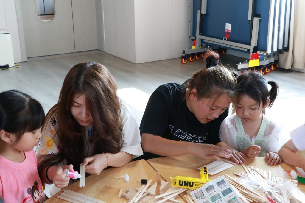 在建筑模型拼装环节,学生们精心准备了各种建筑模型材料,耐心地为小朋友们讲解建筑结构组成、搭建原理等专业知识,鼓励小朋友们大胆发挥想象力和创造力,设计出独具特色的建筑作品。小朋友们化身“小小建筑师”,他们专注投入,有的仔细比对零件、小心拼接,有的大胆尝试不同组合方式。当一个个精美的建筑模型诞生时,孩子们脸上洋溢着自豪与喜悦,欢声笑语充满整个活动场地。