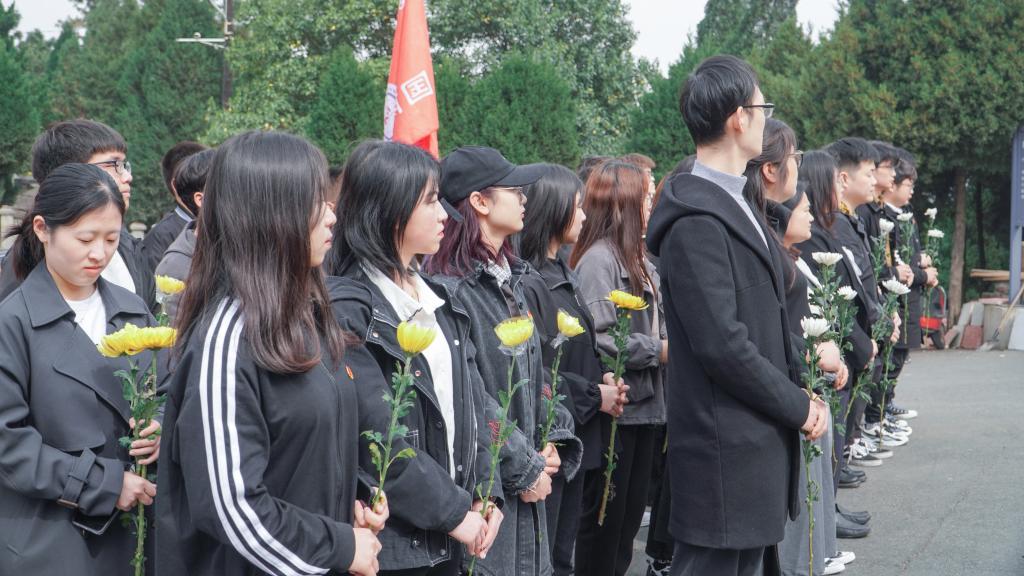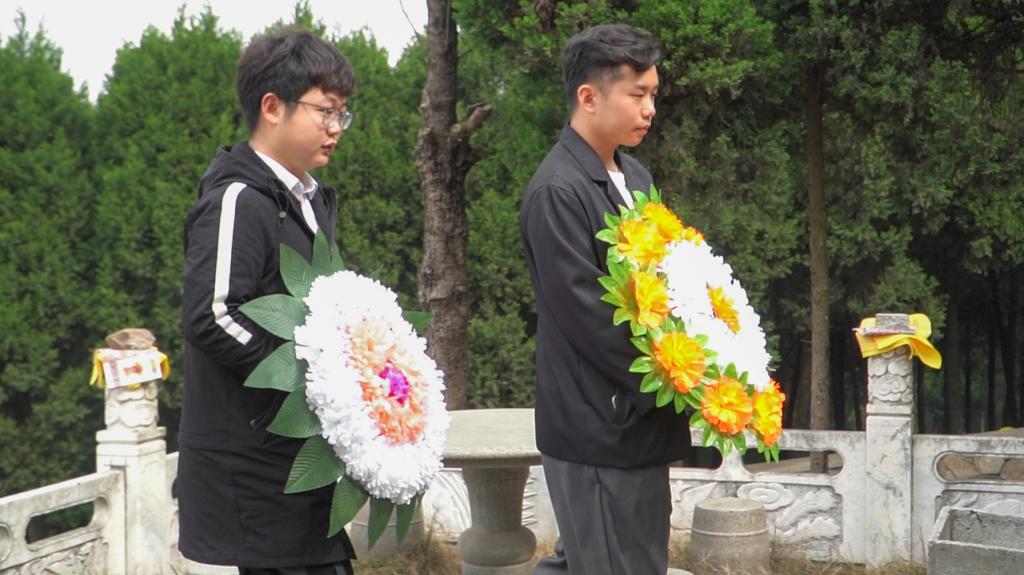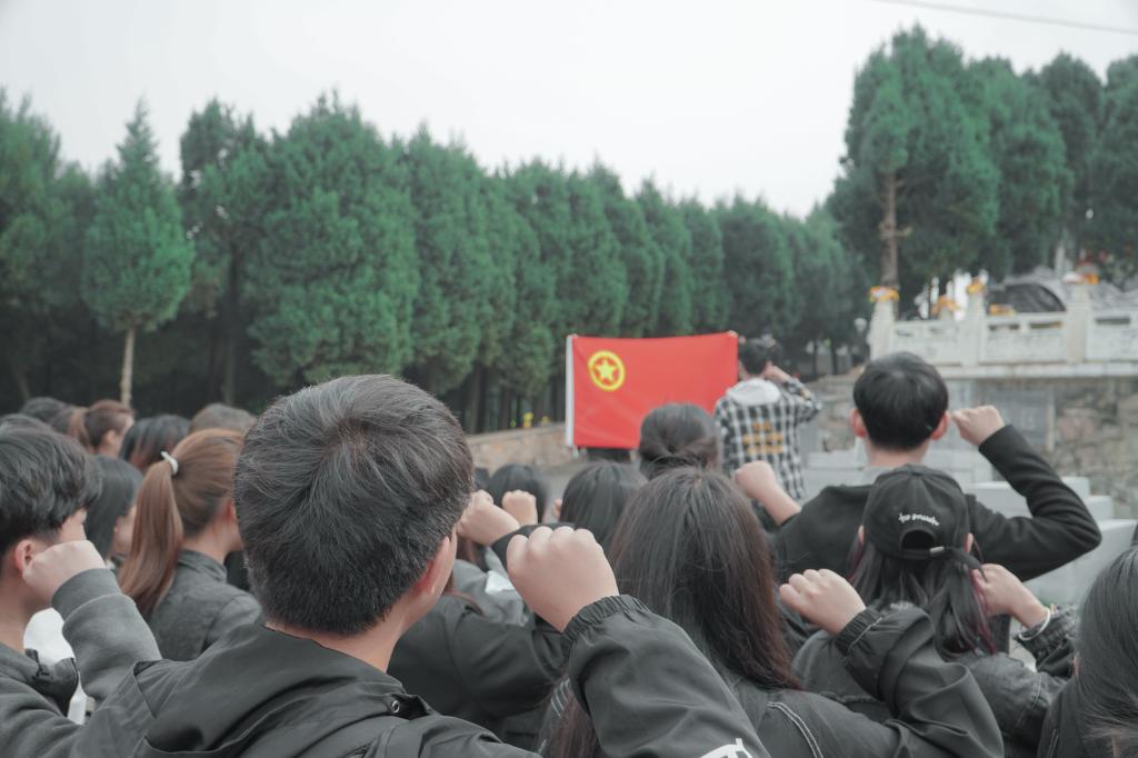 作为学生代表的青年团员朱琳发言到,正是由于革命先烈们的不懈奋斗和英勇牺牲,才让中华民族在战火中涅槃,使新中国实现了站起来、富起来、强起来的伟大事业。新时代的大学生更应学习革命先烈的精神,从而使自己成为具有高尚品质和良好道德修养的合格建设者和接班人。接着,教师代表发表讲话,首先向同学们介绍了曹灿章将军的丰功伟绩,勉励同学们不忘先烈,学习高尚的品格和无私的精神,要树立远大理想,坚定爱党、爱国、爱社会主义的信念,勇担重担,为把我国建设成为社会主义现代化强国,实现中华民族的伟大复兴中国梦而奋斗。仪式结束后,同学们自发清扫了陵园内部的垃圾,以倡导文明祭祀之风。
