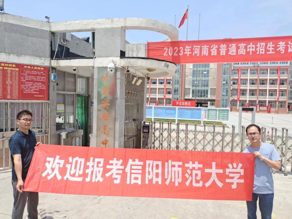 25日、26日,宣传组在焦作市第十一中学、焦作市外国语中学、焦作十二中等高中进行招生宣讲,主要向考生和考生家长介绍信阳师范大学概况、2023年招生计划、招生条件、录取规则、收费标准等。