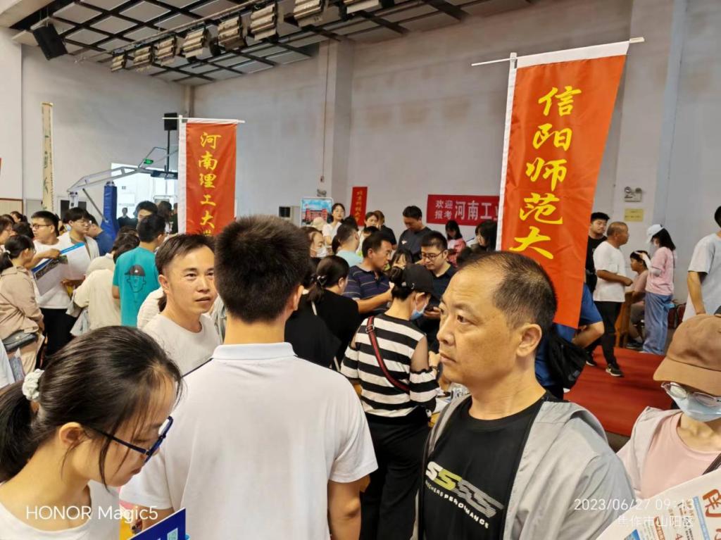 27日上午,宣传组在焦作一中参加焦作市2023年考生志愿填报咨询会。会上众多考生对信阳师范大学公费师范生、师范类专业表现出浓厚兴趣,宣传组成员积极为前来咨询的考生和家长答疑解惑,并向考生和家长介绍了信阳师范大学的办学实力、学科优势、专业特色等,对于考生考分能否填报信阳师范大学给出合理建议,现场向考生及家长演示了信阳师范大学招生信息、招生政策、历年录取数据查询办法。咨询会后,宣传组赴修武一中、修武实验高中进行了招生宣传。