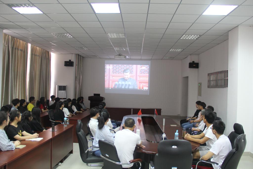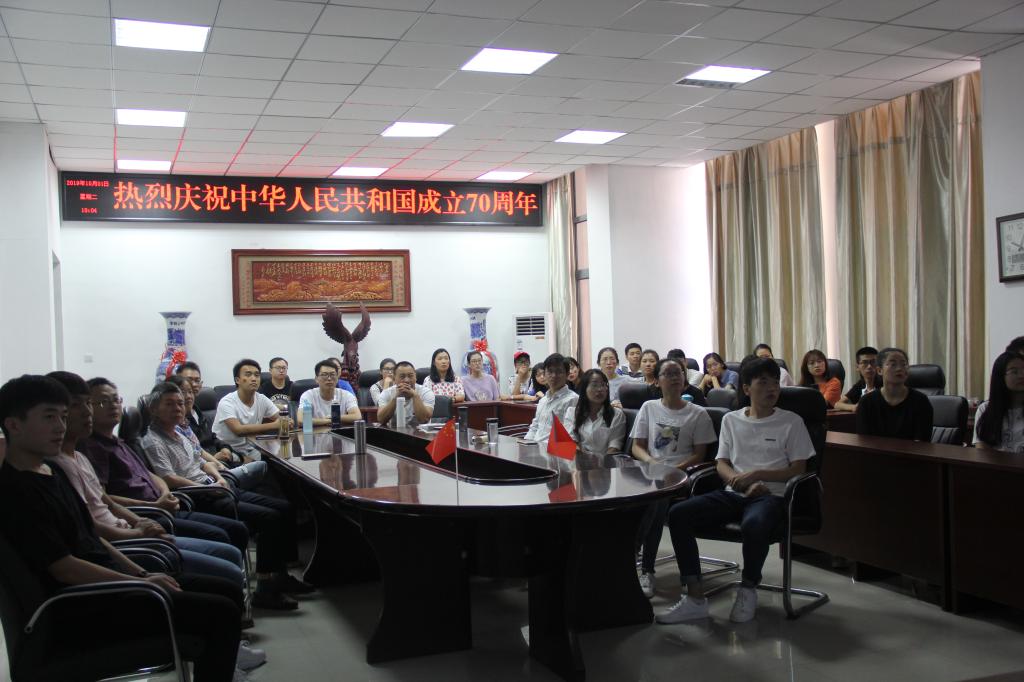 10月1日上午,BEAT365英国官网积极组织师生在综合实验楼206会议室集中收看了庆祝中华人民共和国成立70周年大会现场直播及阅兵式、群众游行,共同庆祝祖国70华诞。学院党委书记黄学玉、党委副书记方明科,部分师生和党员代表共同观看了直播盛况。