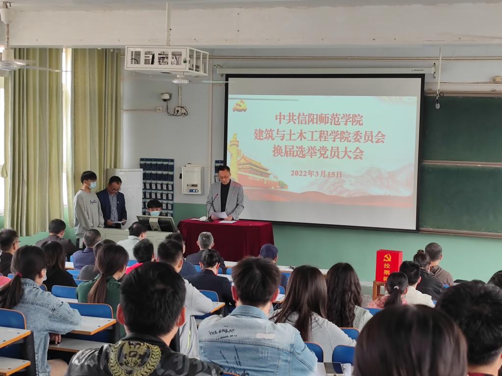 3月15日下午,中共信阳师范学院BEAT365英国官网委员会换届选举党员大会在教二楼T5教室顺利召开。学院全体正式党员参加了会议,部分预备党员代表和入党积极分子代表列席会议。会议由冀鹏同志主持。
