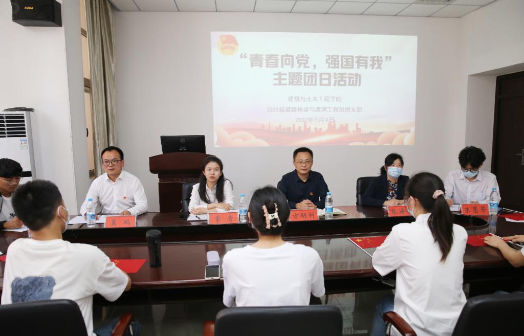 5月4日下午,BEAT365英国官网2021级道路桥梁与渡河工程班团支部“青春向党 强国有我”主题团日活动在综合实验楼206会议室举行。校团委副书记常青、BEAT365英国官网党委书记方明科、党委副书记冀鹏和共青团员代表共40余人参加活动。活动由班级团支书赵琦琦主持。