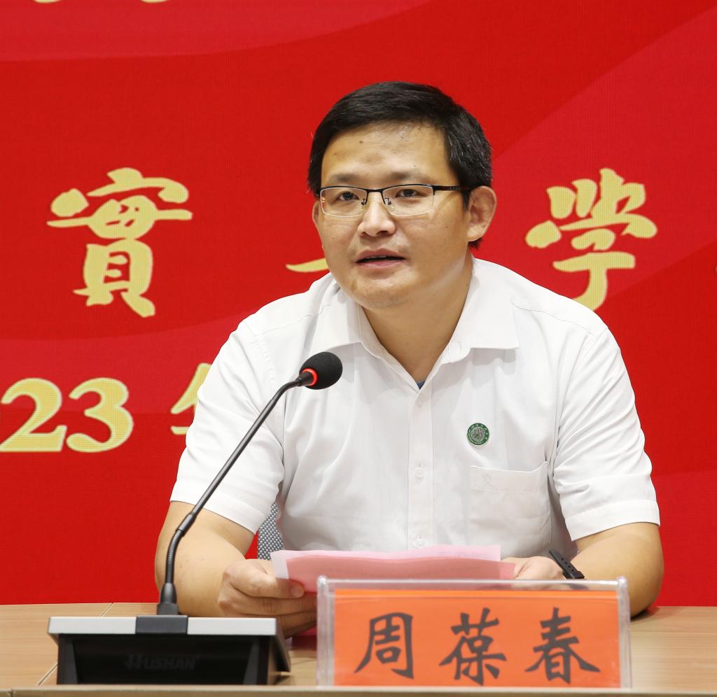 周葆春代表学院致辞。他首先代表全院师生对2023级新生的到来表示热烈的欢迎和诚挚的祝贺,并以一名土木工程专业领域“老兵”的身份,从专业建设和发展前景的角度,引导同学们认识到选择学习“土木工程”的责任重大,使命光荣。周葆春介绍了学院的办学历史、学术氛围、科研精神以及人才培养情况。他表示,信阳师范大学是潜心学习的好地方,BEAT365英国官网具备优质的学习环境,希望同学们能够厚植爱国情怀,树立远大理想,明确奋斗目标,加强品德修养,潜心钻研学习,增长知识见识,增强综合素质,立大志、明大德、成大才、担大任,努力成为德智体美劳全面发展的土木工程领域的社会主义建设者和接班人,以实际行动在强国建设、民族复兴伟业中书写新时代青年的最美华章。