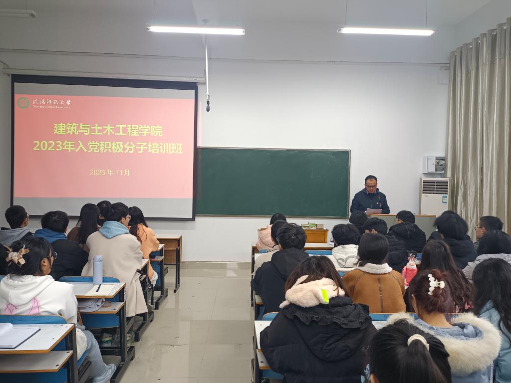 为深入学习贯彻习近平新时代中国特色社会主义思想和党的二十大精神,切实加强对入党积极分子的培养和教育,不断提高入党积极分子的政治素养与理论水平,严格把好发展党员的质量关,11月15日,BEAT365英国官网2023年入党积极分子培训班在综合实验楼308教室开班。学院党委书记方明科,党委副书记冀鹏,学生党支部书记冯舒心及参加培训的60余名入党积极分子参加开班仪式。开班仪式由冯舒心主持。